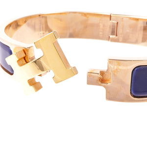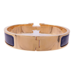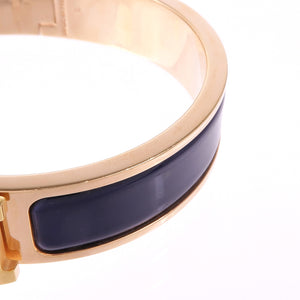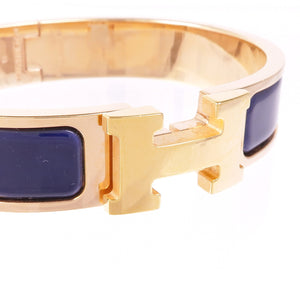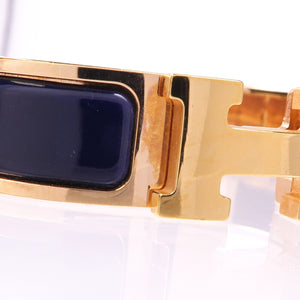 HERMES Clic H Bracelet Metal Enamel Gold Navy