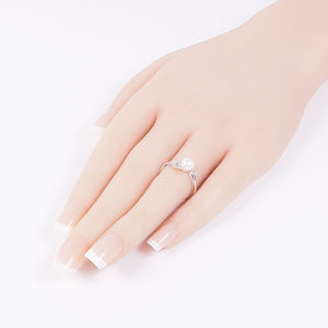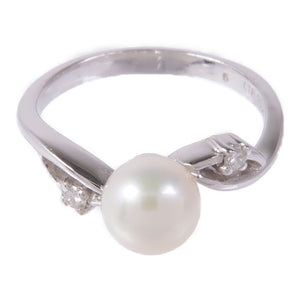 JEWELRY Pearl Diamond Ring 18K White Gold US#6