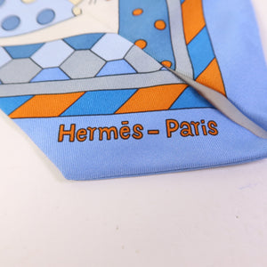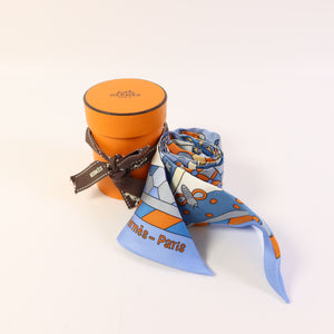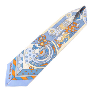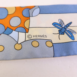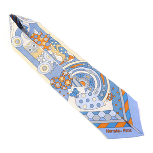 HERMES Silk quality Twilly silk width Scarf Blue/Orange silk