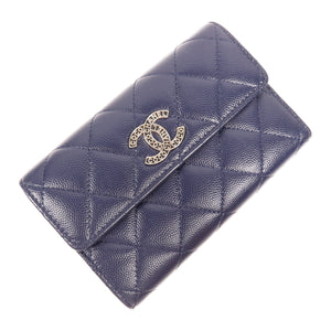 CHANEL CC SHW Wallet Calfskin Leather Blue