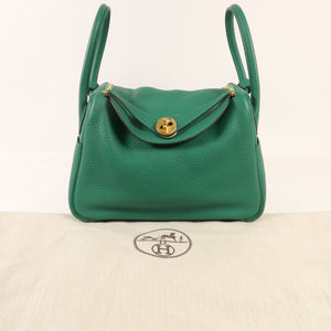 HERMES GHW Lindy 26 2 Way Bag Clemence Leather Vert Vertigo