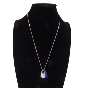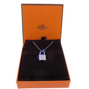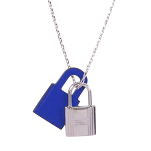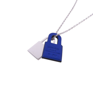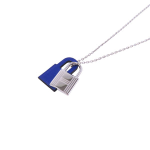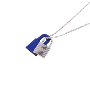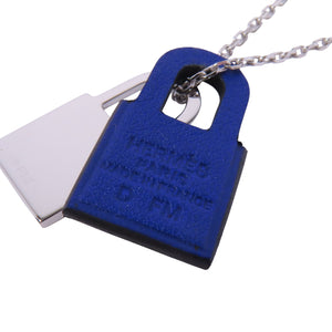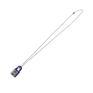 HERMES PHW O'Kelly Necklace Calfskin Lather Metal Blue Silver Tone Color