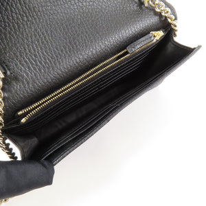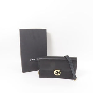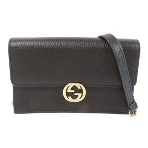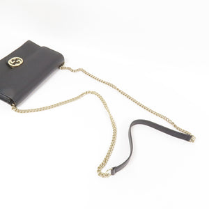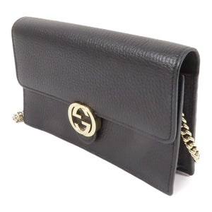 GUCCI GG GHW GG Interlocking Chain Shoulder Bag Calfskin Leather Black