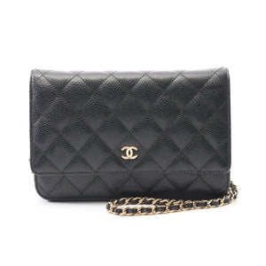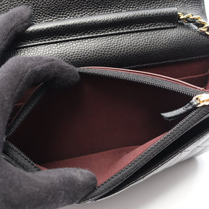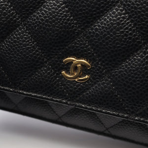 Matelasse Chain wallet Caviar skin Black Gold hardware