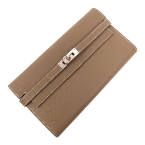 HERMES PHW Kelly Long Wallet Epsom Wallet Etoupe