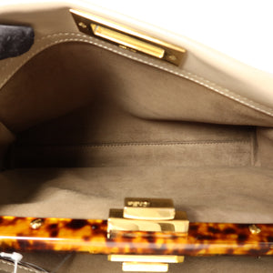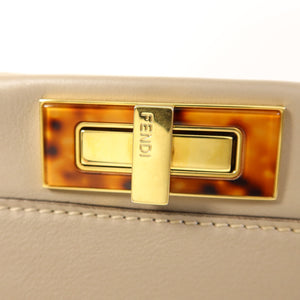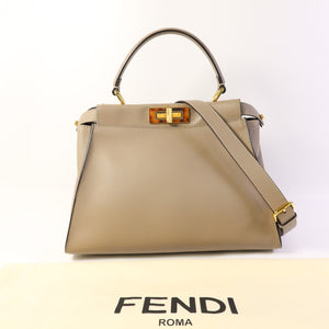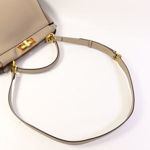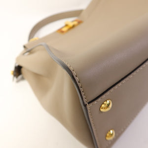 FENDI GHW Peekaboo 2 Way Shoulder Bag 8BN290 Calfskin Leather Gray