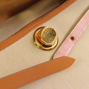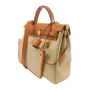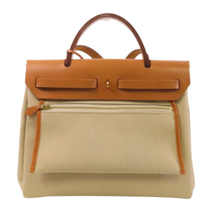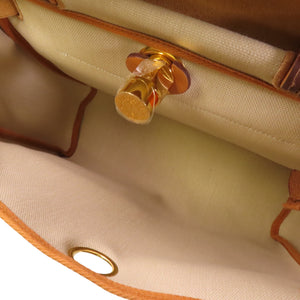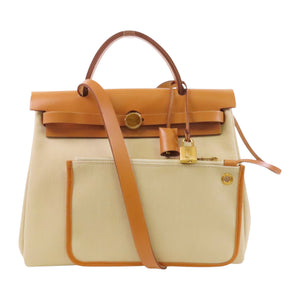 HERMES GHW Herbag PM Hand Shoulder Bag Leather Canvas Beige Brown