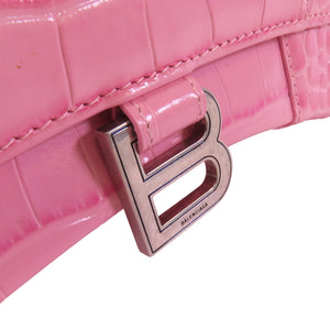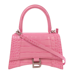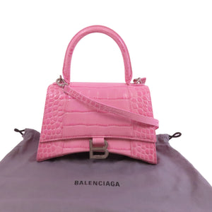 BALENCIAGA SHW Hourglass Small Handbag Shoulder Bag 593546 Embossed Leather Pink